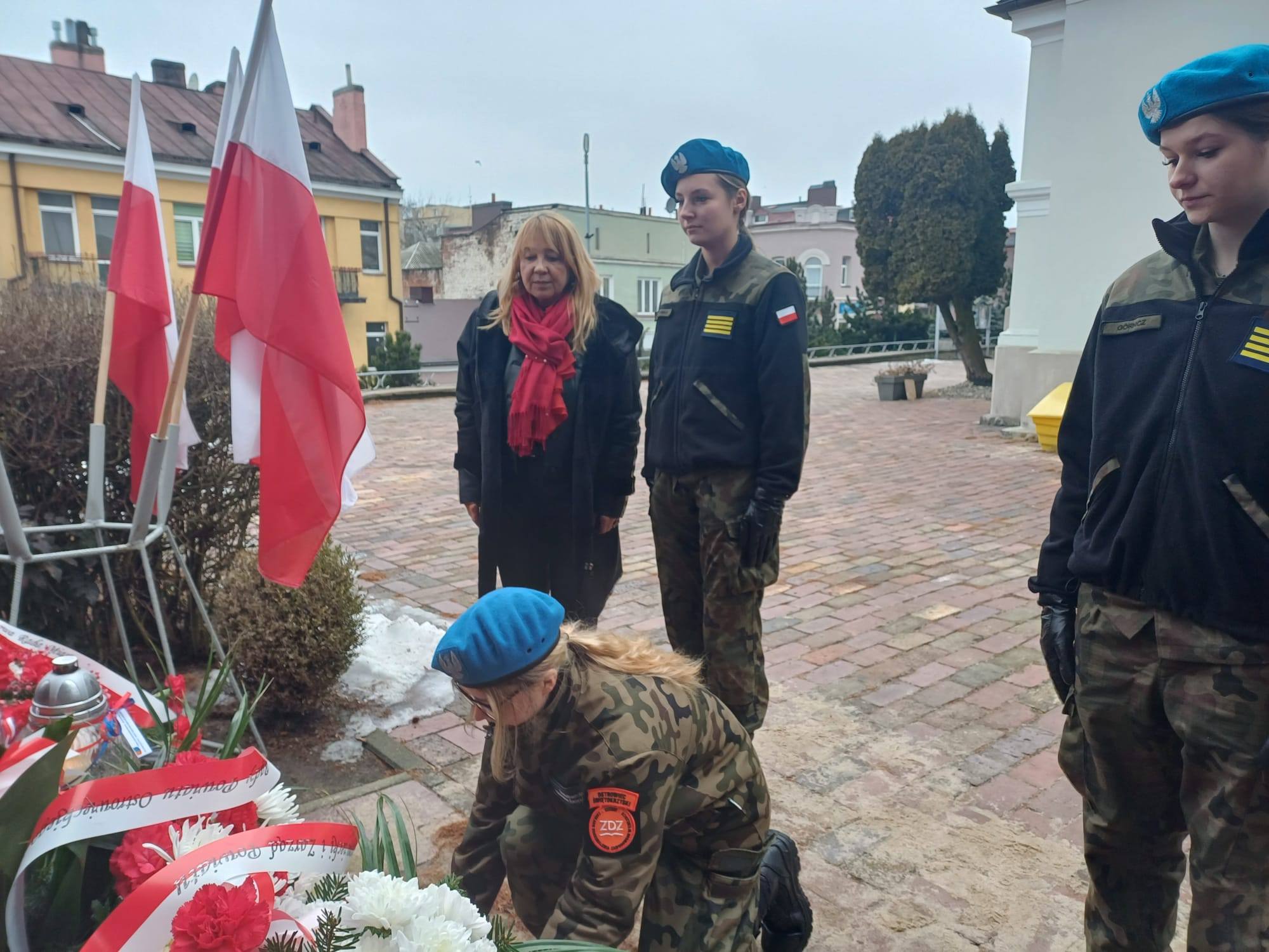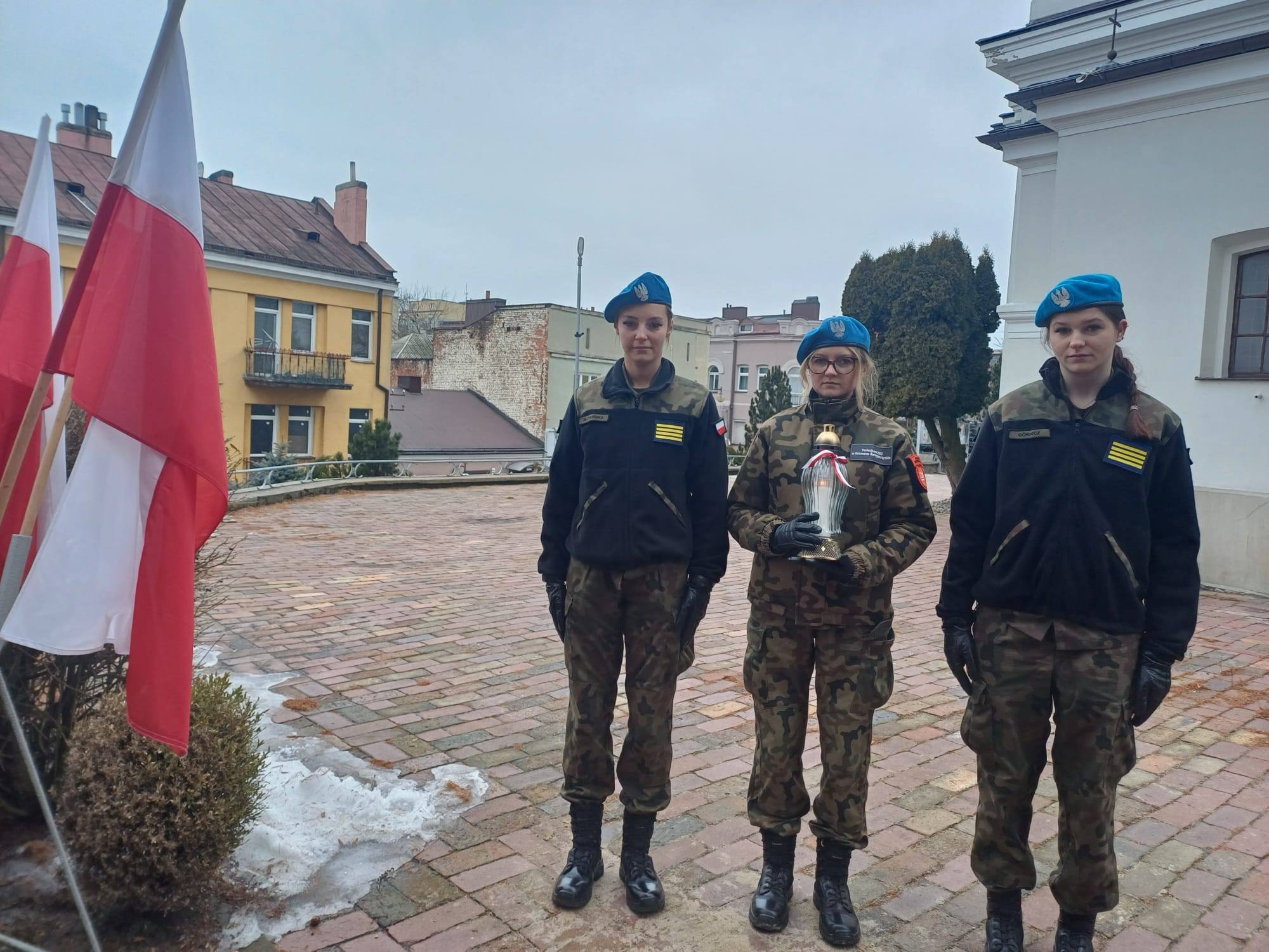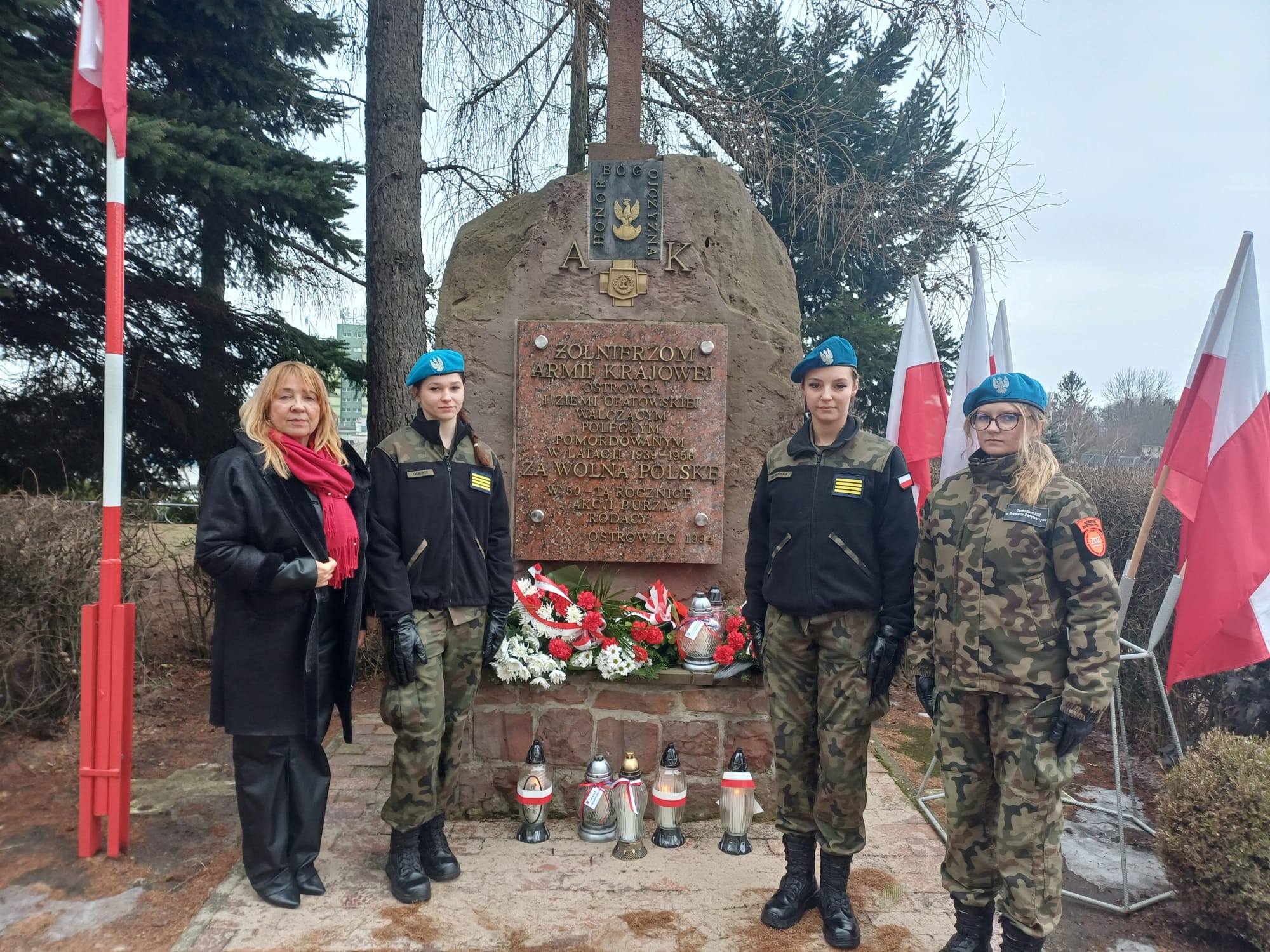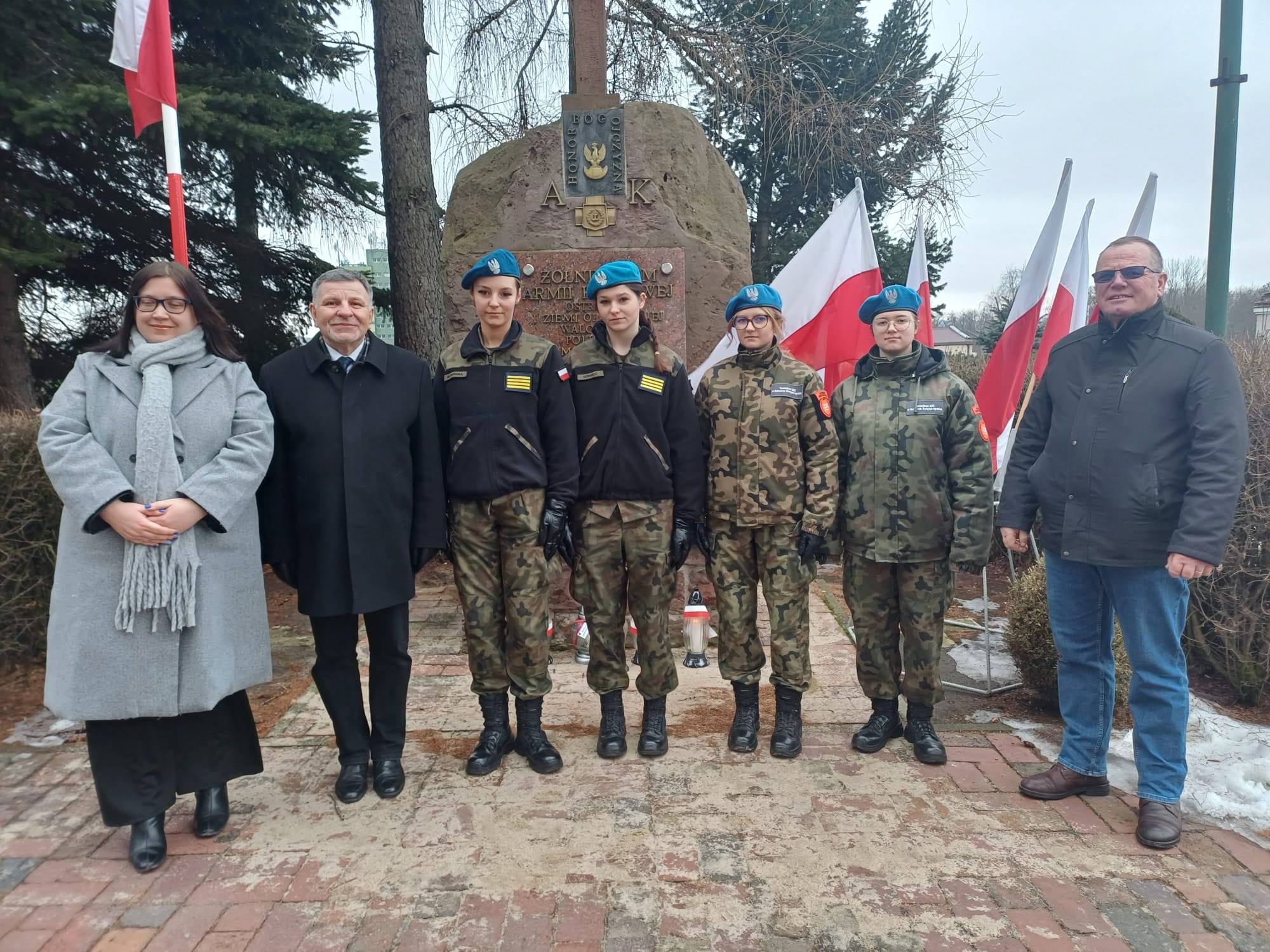 udała się pod pomnik Armii Krajowej na placu Kolegiaty św. Michała Archanioła. Pod opieką pani Grażyny Marchwiany, uczennice zapaliły symboliczny znicz, oddając cześć poległym i zmarłym bohaterom.