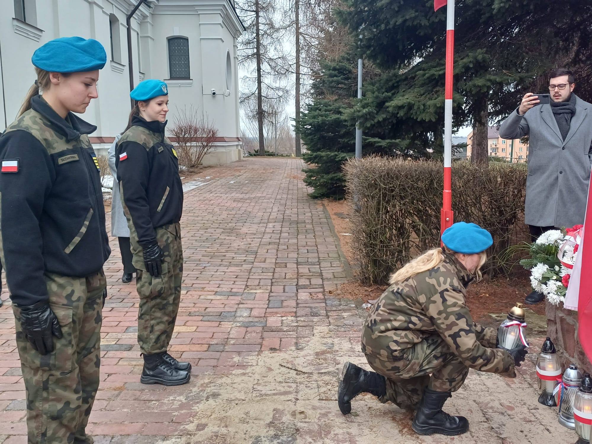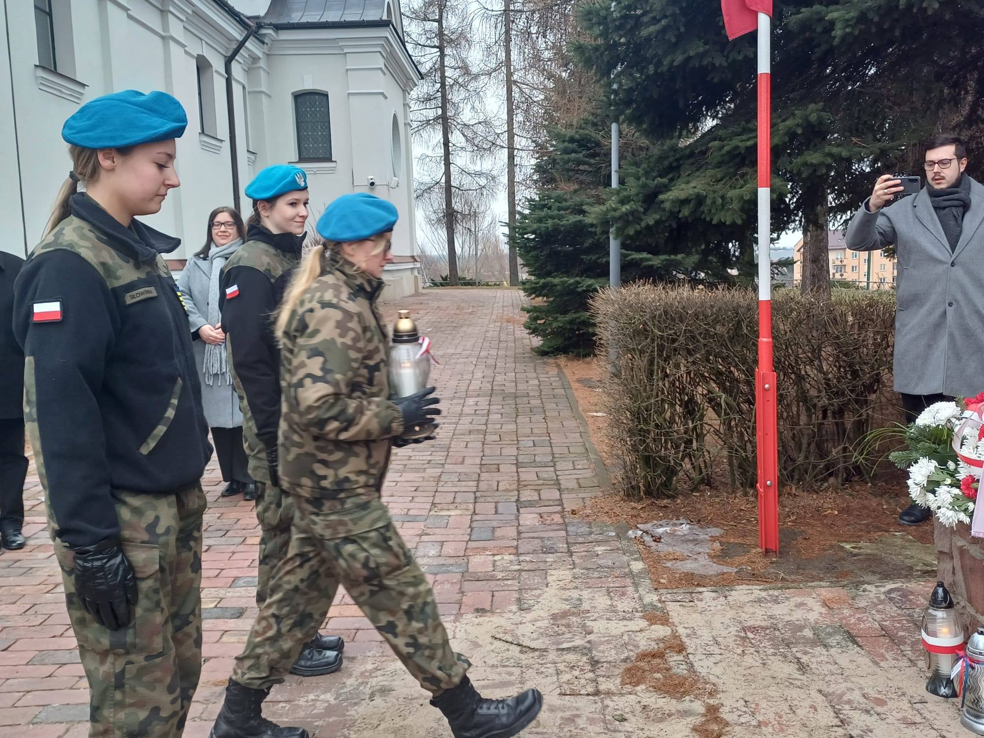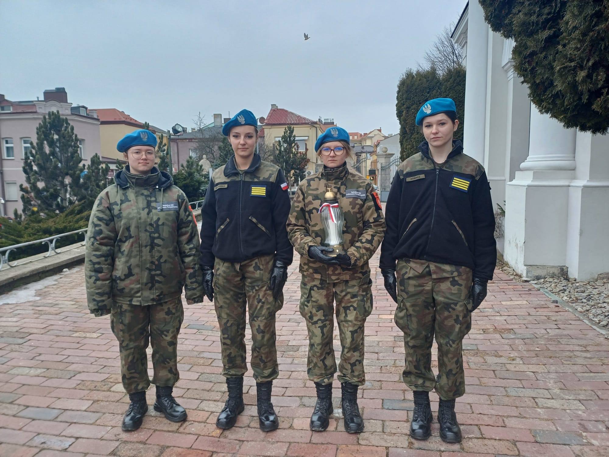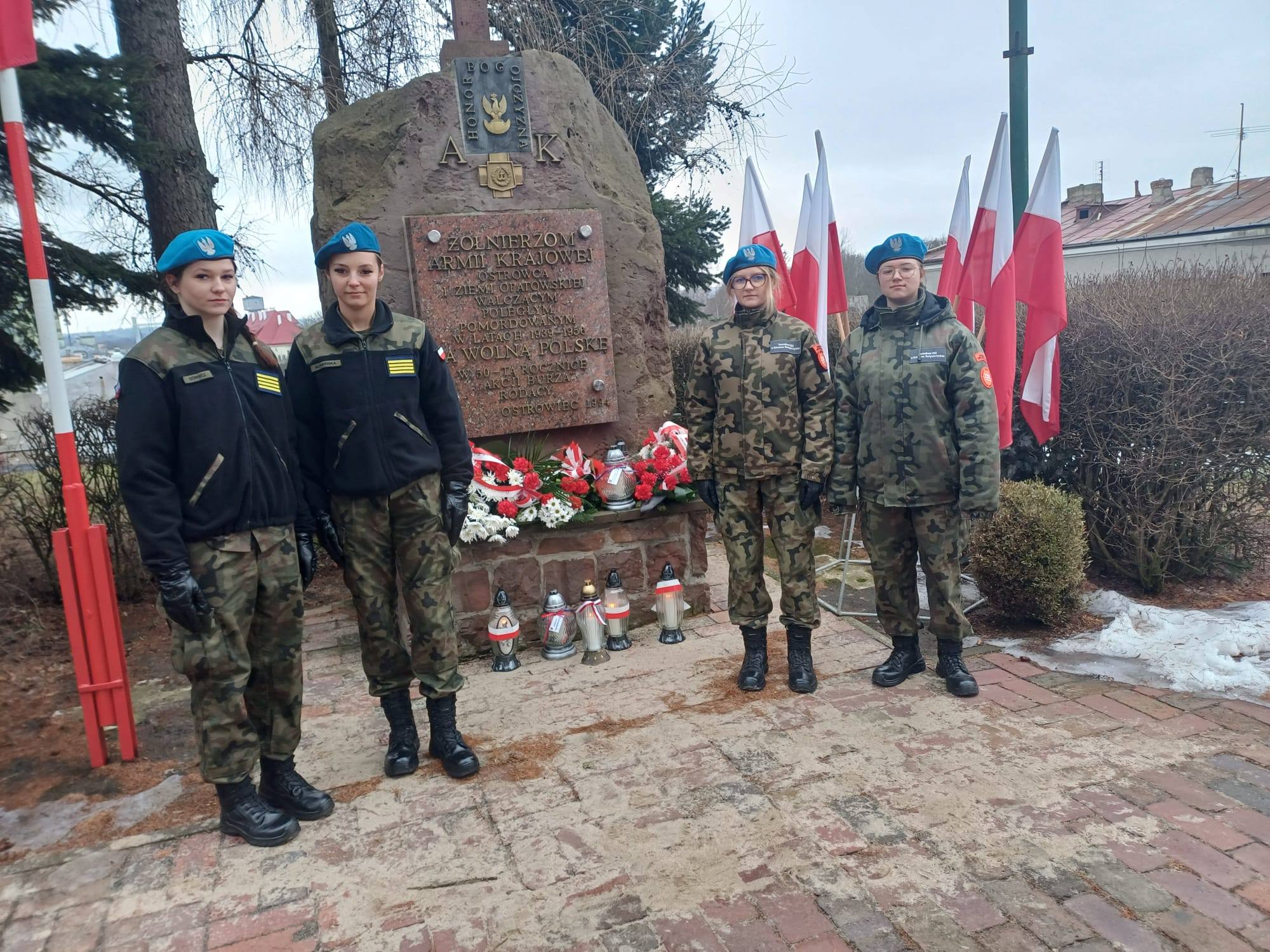 udała się pod pomnik Armii Krajowej na placu Kolegiaty św. Michała Archanioła. Pod opieką pani Grażyny Marchwiany, uczennice zapaliły symboliczny znicz, oddając cześć poległym i zmarłym bohaterom.