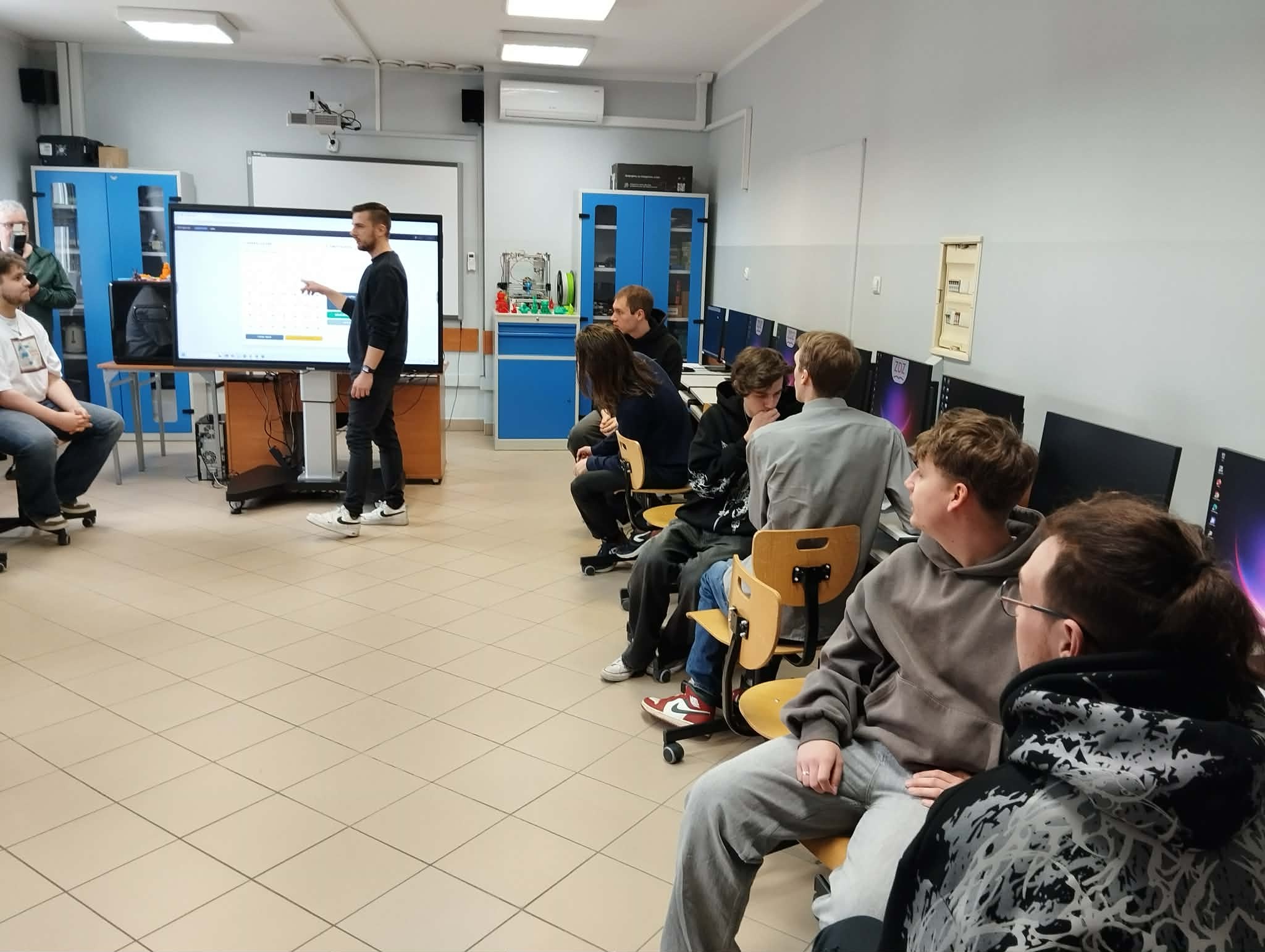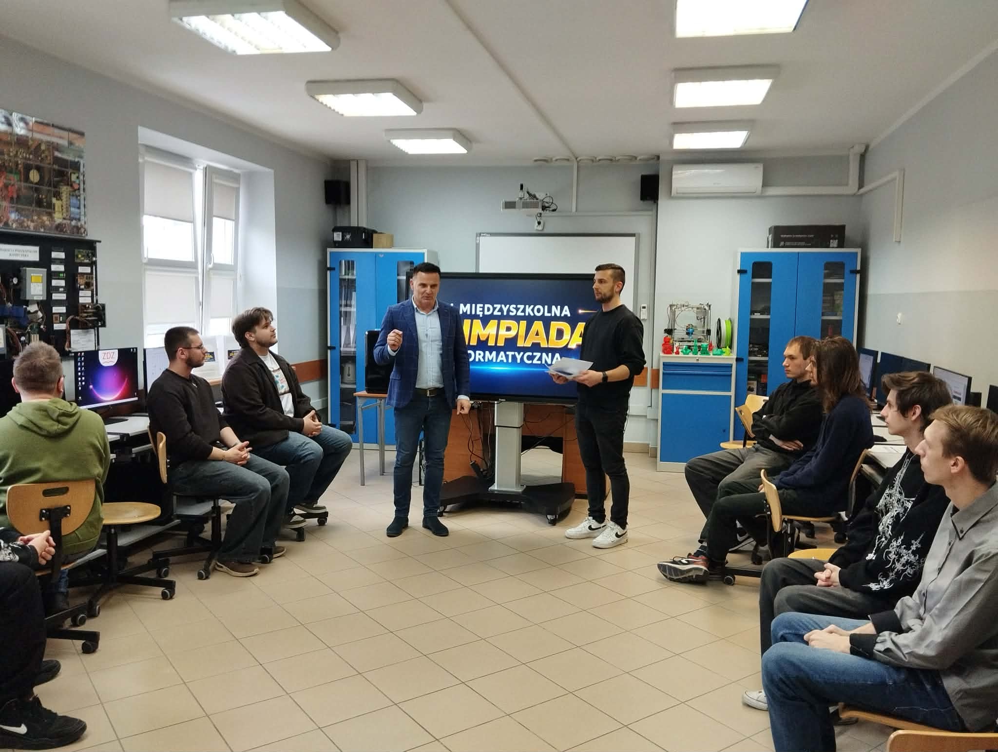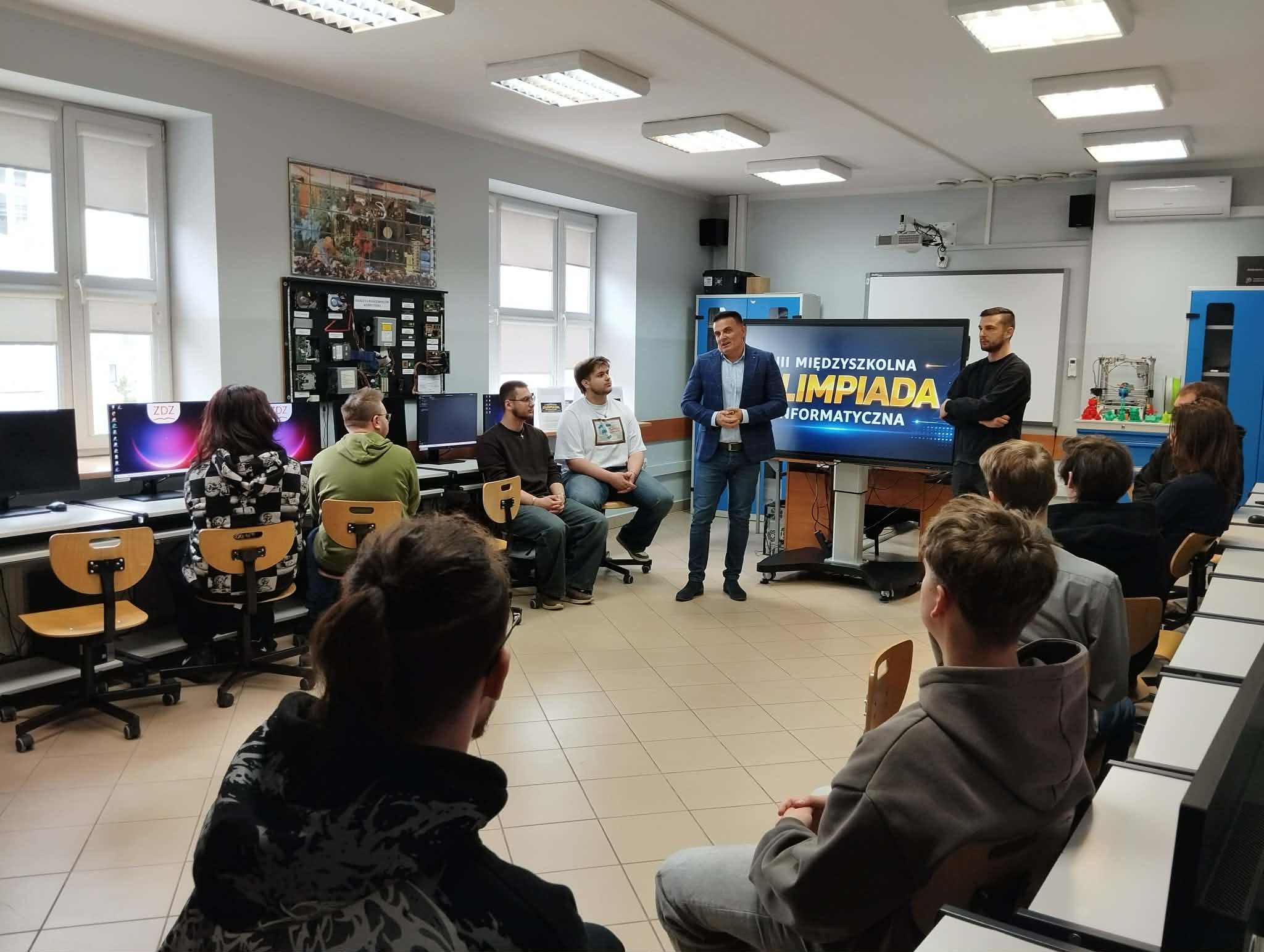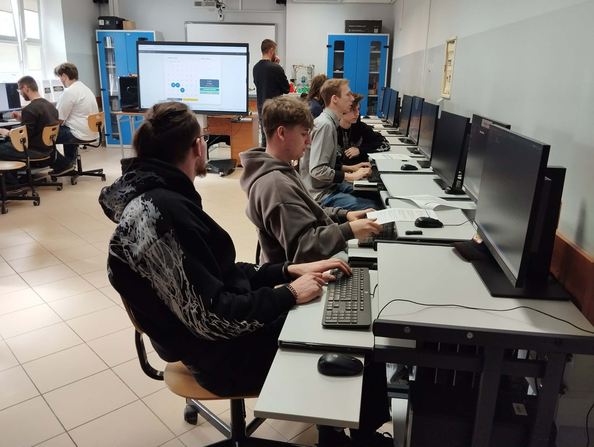 Uczniowie klas informatycznych naszego Technikum wzięli udział w III edycji Międzyszkolnej Olimpiady Informatycznej. Organizatorem konkursu było Niepubliczne Technikum Zawodowe im. Żołnierzy Sił Pokojowych ONZ Zakładu Doskonalenia Zawodowego w Kielcach. Zadanie polegało na wykonaniu symulatora gry losowej na wzór LOTTO. Uczniowie mogli sprawdzić swoje umiejętności z zakresu kwalifikacji zawodowej oraz pracy w zespole.