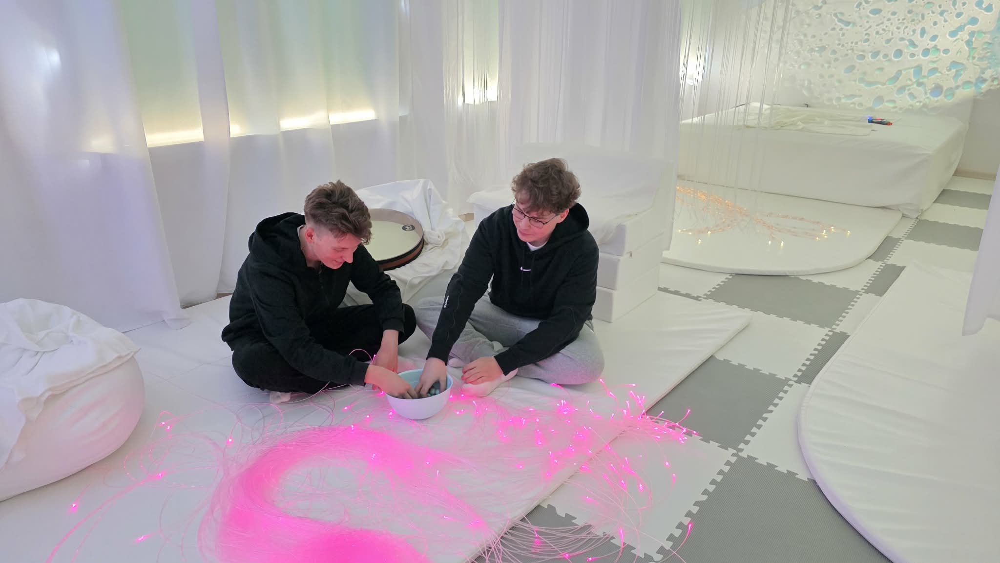 Jednym z najważniejszych miejsc w placówce jest w specjalnie przygotowane, bezpieczne pomieszczenie - sala doświadczania świata, w której wykorzystywana jest terapia Snoezelen, czyli terapia wielozmysłowa, oparta na stymulacji zmysłów w specjalnie przygotowanym, bezpiecznym pomieszczeniu. To przestrzeń, w której uczniowie mogą poznawać otoczenie poprzez zmysły: wzrok, słuch, dotyk. Odpowiednio dobrane światła, dźwięki, faktury i sprzęty pomagają w wyciszeniu, skupieniu, koncentracji oraz regulacji emocji. Dla wielu młodych ludzi jest to miejsce, w którym czują się bezpiecznie i mogą uczyć się we własnym tempie.