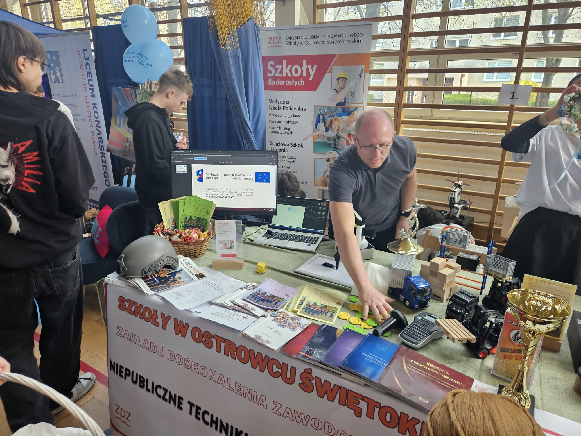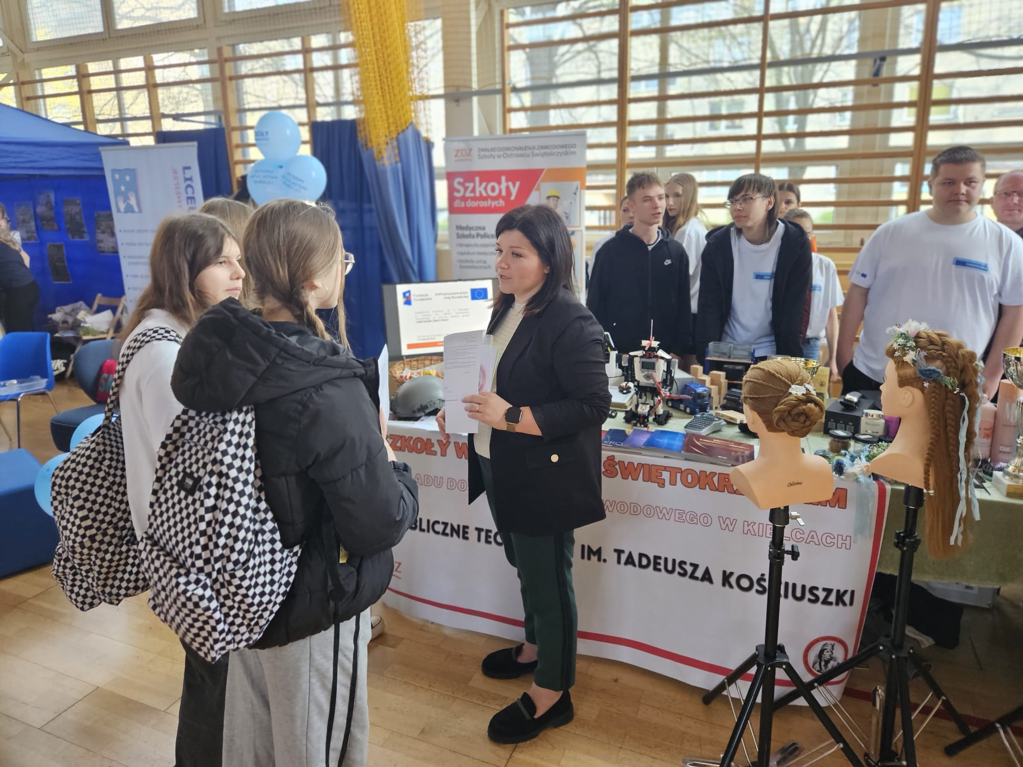 Podczas targów zaprezentowano możliwości kształcenia w technikum oraz szkole branżowej, podkreślając praktyczny charakter nauki i przygotowanie do przyszłego zawodu. Uczniowie mogli również dowiedzieć się więcej o projektach unijnych finansowanych z Europejskiego Funduszu Społecznego Plus (EFS+). Promowaliśmy także projekt „Świętokrzyska Edukacja Zawodowa”, który oferuje dodatkowe formy wsparcia, takie jak kursy, szkolenia i staże.