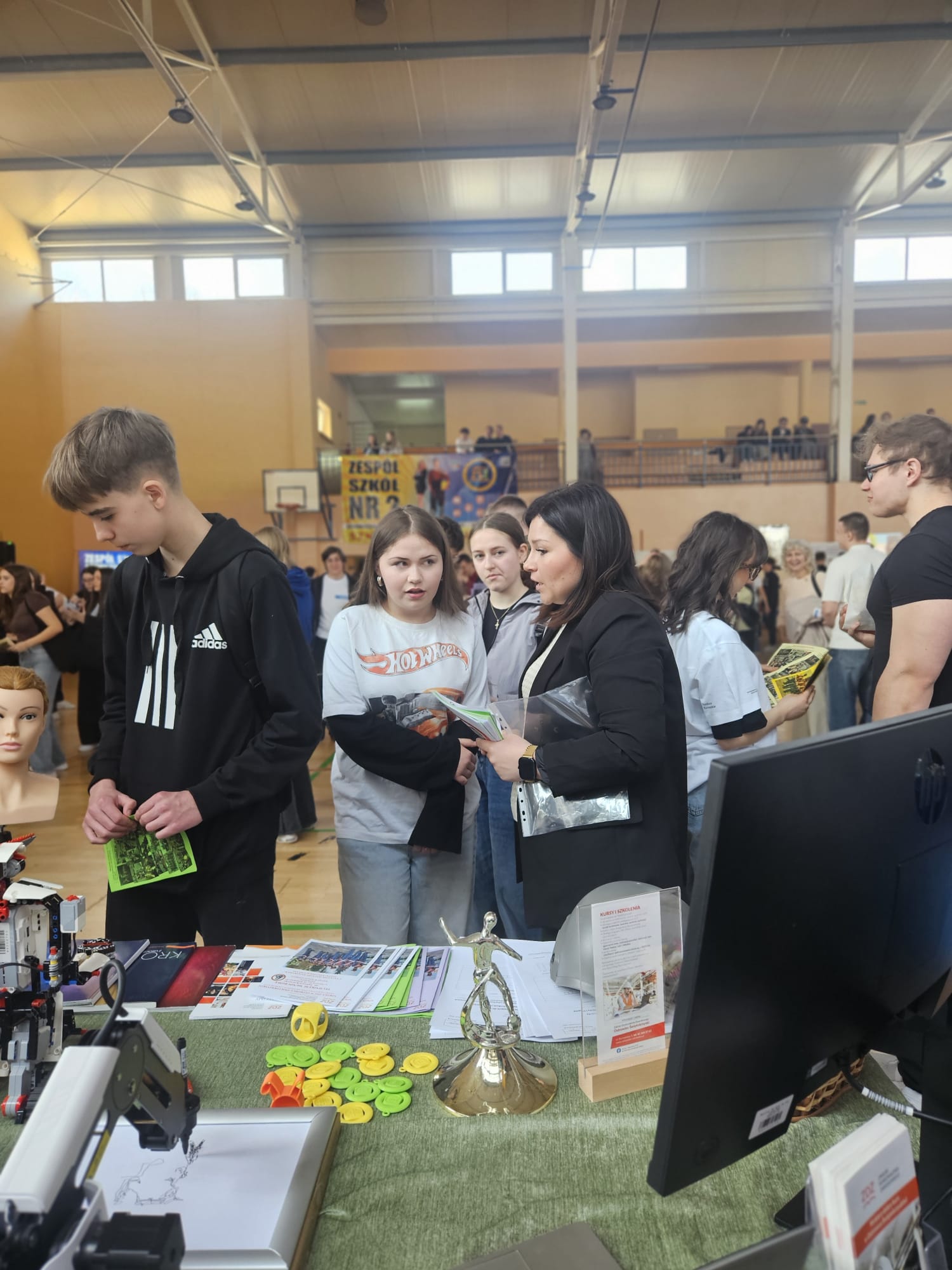 W trakcie wydarzenia przedstawiciele szkoły aktywnie uczestniczyli w spotkaniach z uczniami szkół podstawowych, odpowiadając na pytania dotyczące dalszej ścieżki kształcenia. Stoisko cieszyło się dużym zainteresowaniem, a panująca atmosfera sprzyjała rozmowom o przyszłości edukacyjnej młodzieży.