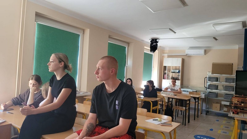 W trakcie zajęć poruszono również zagadnienia związane z innowacjami ekologicznymi 🌱💡. Uczniowie dyskutowali o wyzwaniach i możliwościach, jakie niesie ze sobą praca w nowoczesnych, proekologicznych przedsiębiorstwach oraz wymieniali pomysły dotyczące zastosowania rozwiązań przyjaznych środowisku w branżach, w których będą odbywać praktyki.