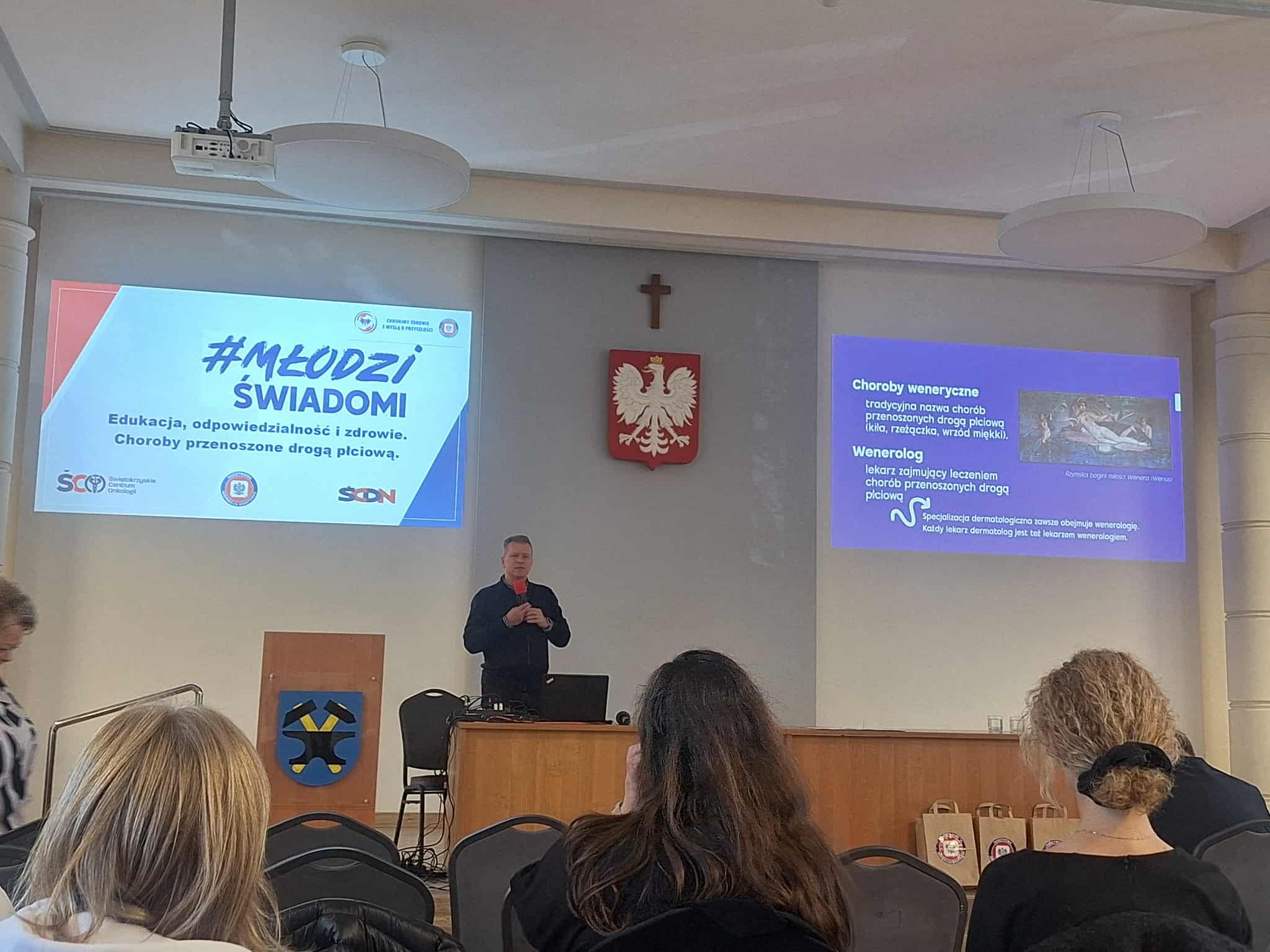 W dniu 24.09.2025r. w Urzędzie Miasta w Starachowicach odbyła się konferencja profilaktyczna „Młodzi Świadomi” będąca częścią cyklu spotkań pod hasłem „Edukacja, odpowiedzialność i zdrowie. Choroby przenoszone drogą płciową”.