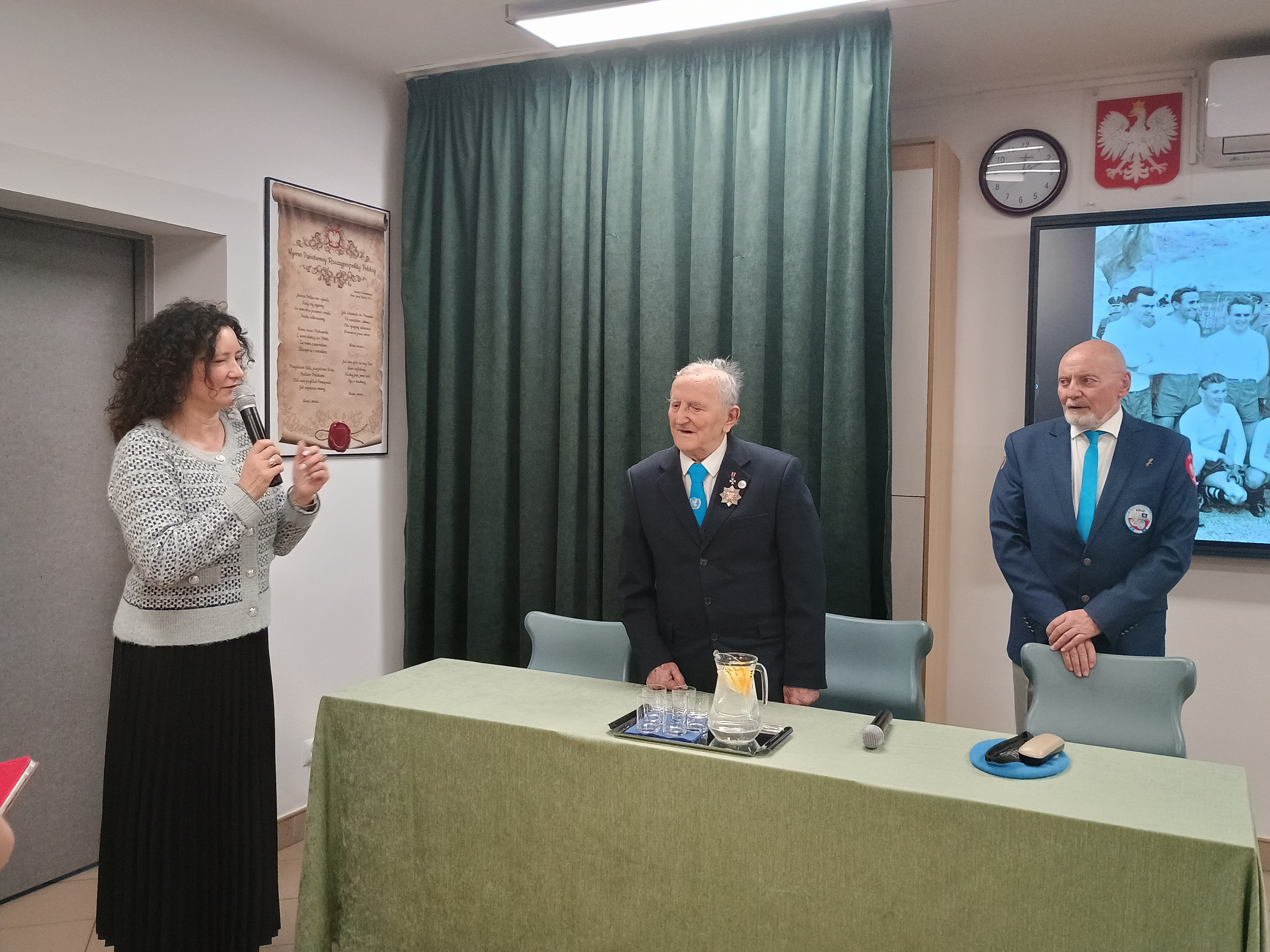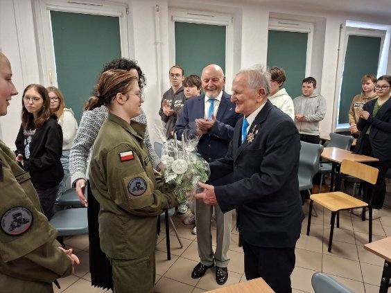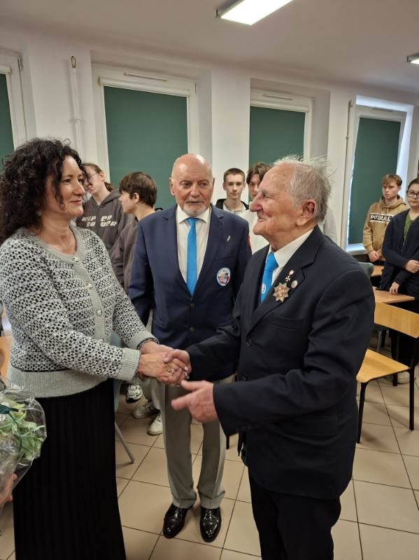 W dniu 11 grudnia nasza szkoła gościła – z inicjatywy Pani Dyrektor Izabeli Pustuły - dwóch weteranów misji poza granicami państwa, Józefa Równickiego oraz Bogusława Swata. W spotkaniu uczestniczyli głównie uczniowie klas OPW, którzy poznali niezwykłą historię życia jednego z nich. W 1953 Polska została zaproszona przez Koreę Północną do Komisji Nadzorczej Państw Neutralnych, by wspólnie z ONZ czuwać nad przestrzeganiem rozejmu w wojnie koreańskiej. Pan Józef Równicki pełnił wówczas funkcję telegrafisty, obecnie należy do Stowarzyszenia Kombatantów Misji Pokojowych ONZ w Radomiu. Wielokrotnie brał udział w krótkofalarskich mistrzostwach w Polsce, uzyskując wspaniałe wyniki. Młodzież – w rozmowie z zacnymi gośćmi - mogła się dowiedzieć o charakterze i trudach misji poza granicami kraju, ale także o tym, by w dążeniu do celu nie przejmować się porażkami. Na koniec wspomnień wzbogaconych zdjęciami Pana Józefa uczniowie złożyli serdeczne podziękowania weteranom za ciekawą lekcję historii, wręczając im jednocześnie świąteczny upominek, a Pani Dyrektor zaprosiła wyjątkowych Gości na kolejne spotkanie.