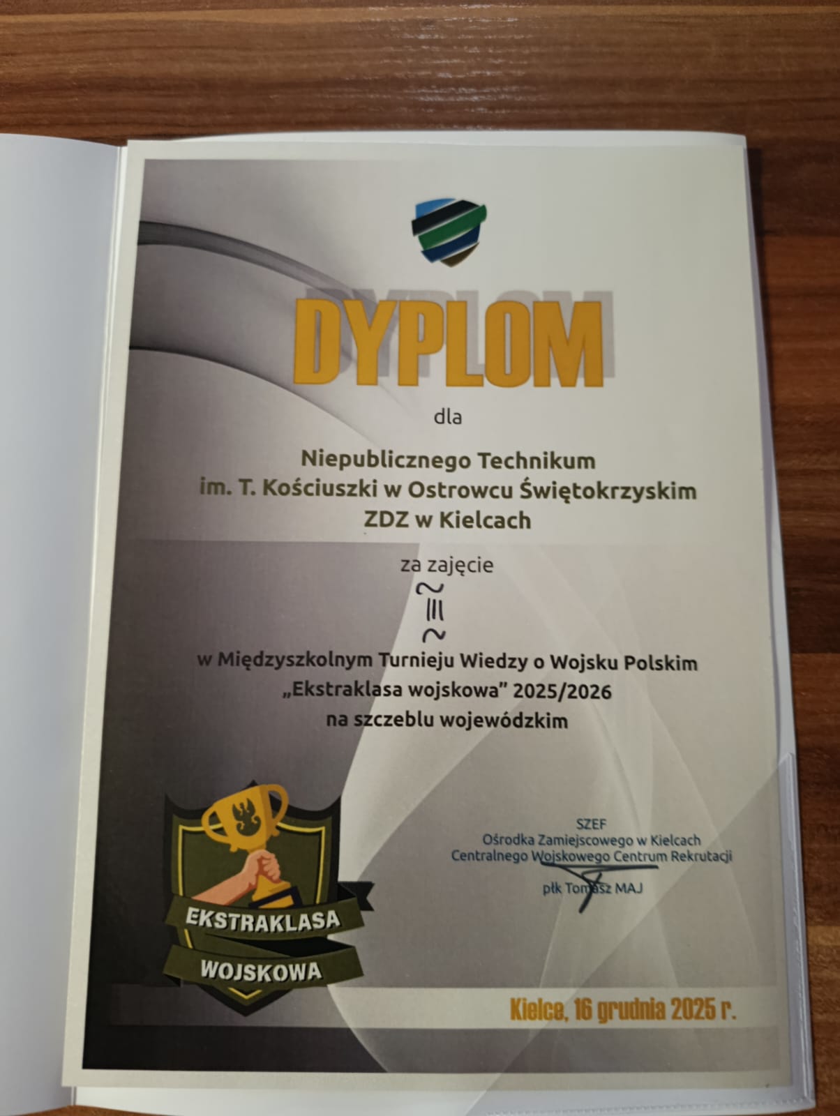 W dniu 16 grudnia trzyosobowa drużyna uczniów Niepublicznego Technikum im. T. Kościuszki w Ostrowcu Świętokrzyskim w składzie: Krystian Dryjas, Konrad Gawlik oraz Filip Sapielak wzięła udział w wojewódzkim etapie konkursu dla uczniów klas OPW