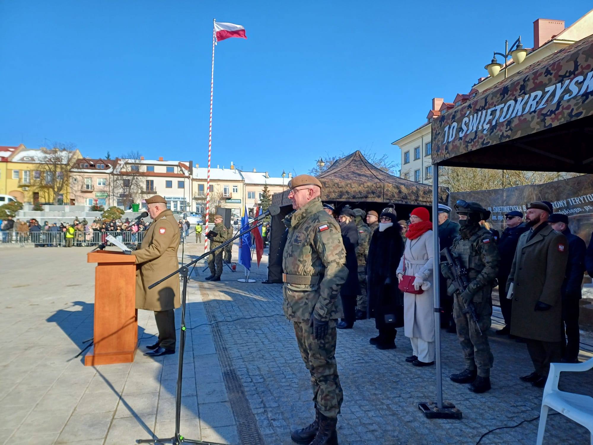Uroczystość odbyła się w niedzielę 1 lutego 2026 r. na Rynku w Ostrowiec Świętokrzyski. Przysięgę złożyło blisko 60 ochotników kończących szkolenie podstawowe w ramach projektu „Ferie z WOT”, oficjalnie wstępując w szeregi Wojska Polskiego oraz 10. Świętokrzyskiej Brygady Obrony Terytorialnej.