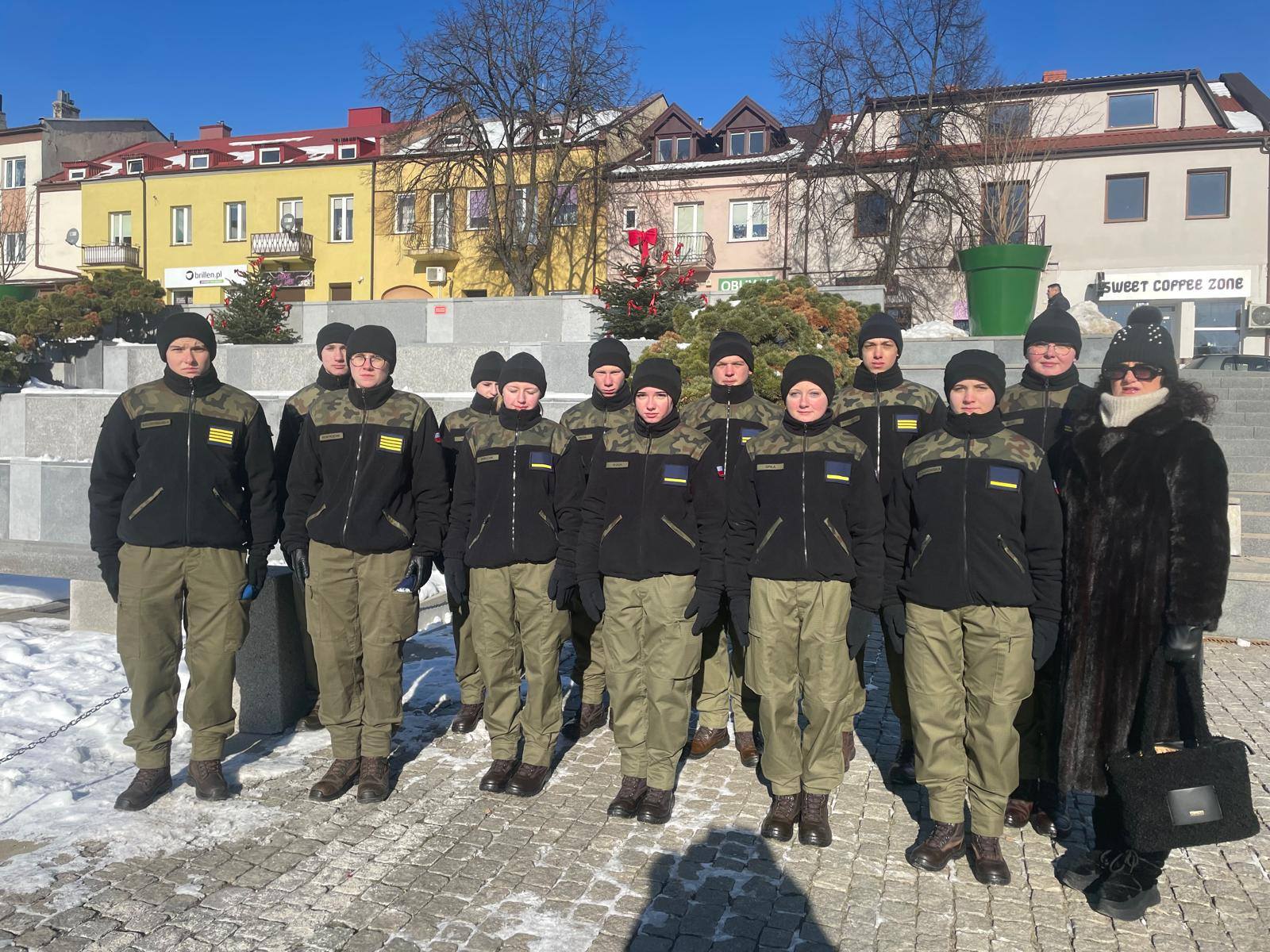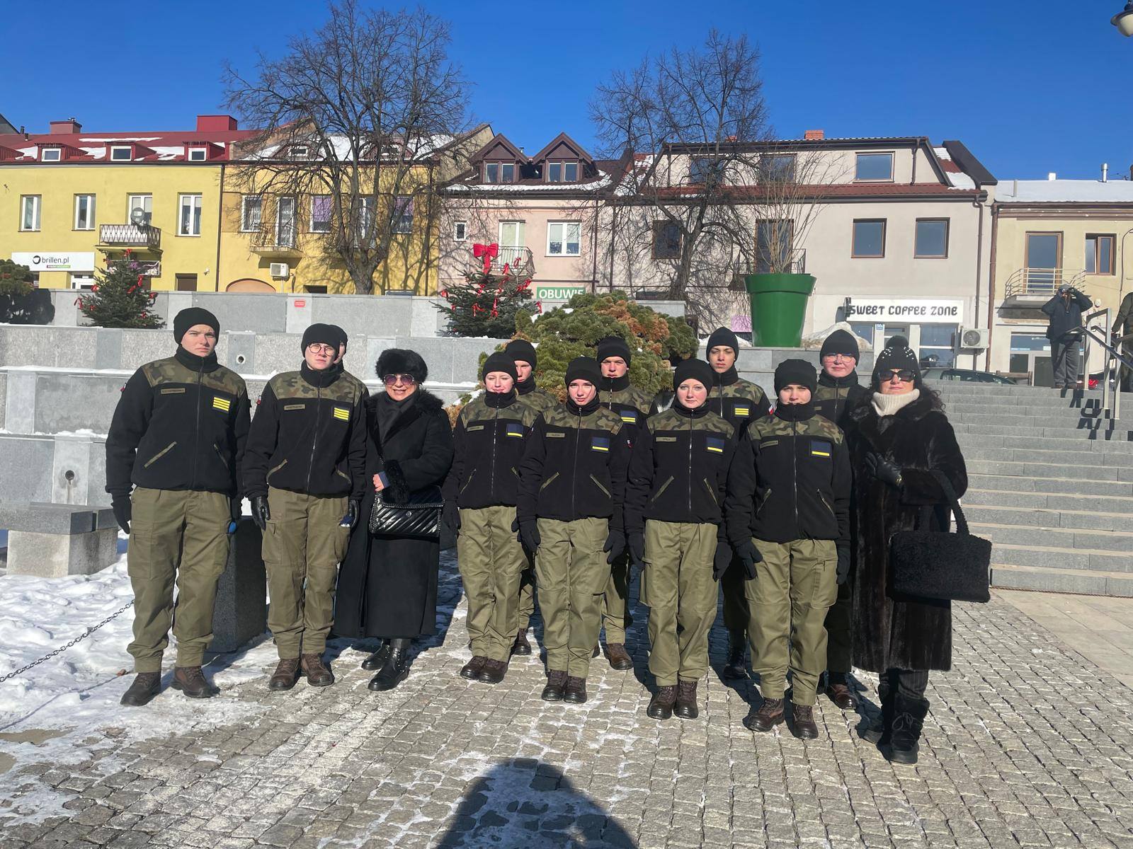 W wydarzeniu wzięli udział: Pani Dyrektor Izabela Pustuła oraz Pani Grażyna Marchwiany – koordynator klas mundurowych, wraz z uczniami klas OPW.