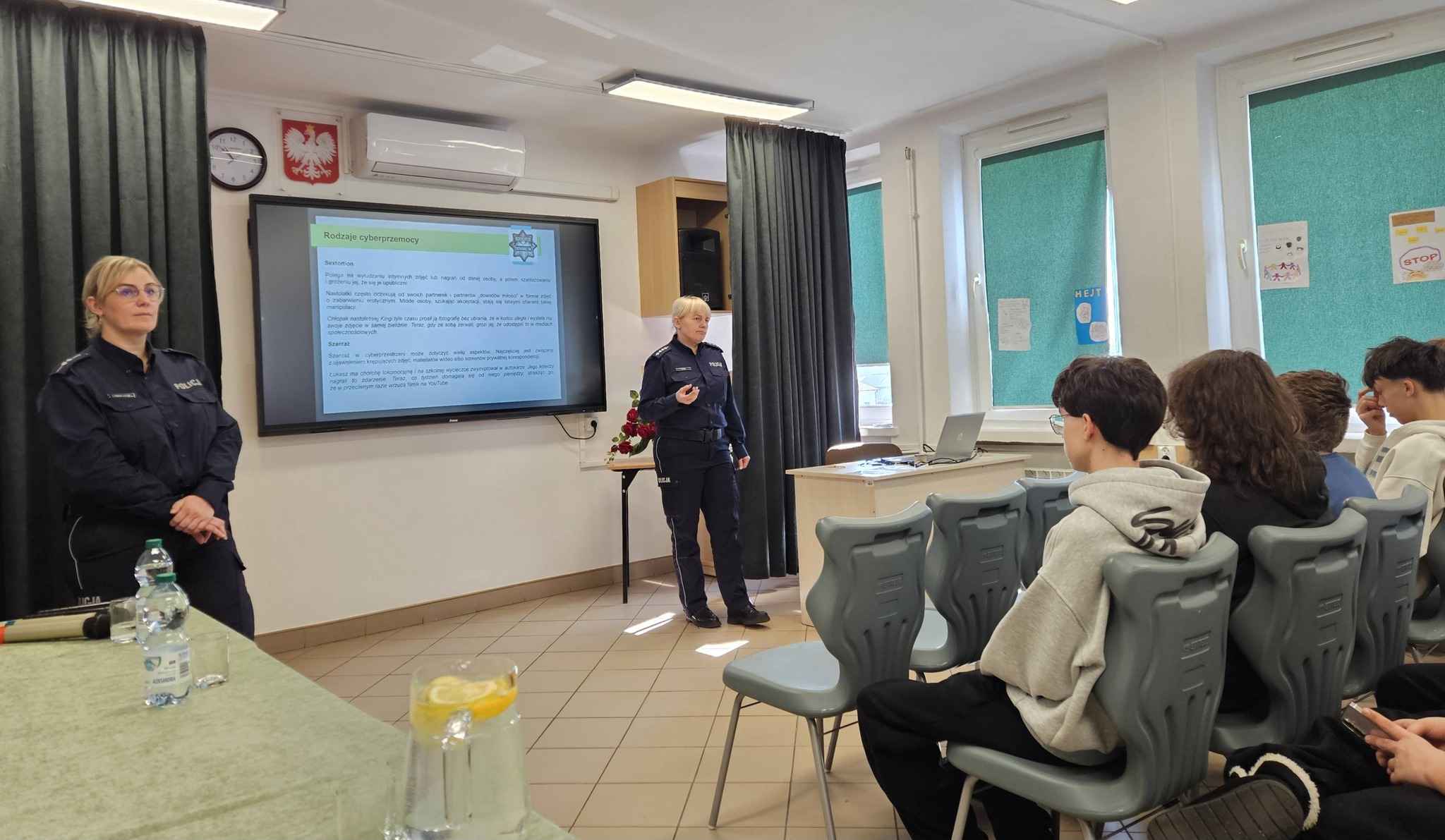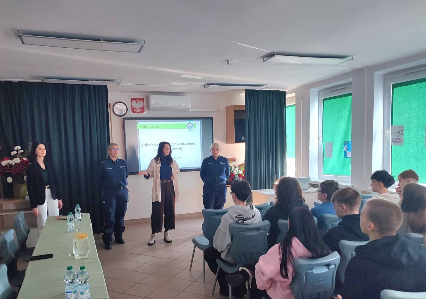 Podczas spotkania głos zabrali również reprezentanci Komendy Powiatowej Policji w Ostrowcu Świętokrzyskim oraz przedstawicielka adwokatury, którzy omówili aspekty prawne i bezpieczeństwa związane z hejtem oraz cyberprzemocą, szczególnie wśród młodych użytkowników internetu.
