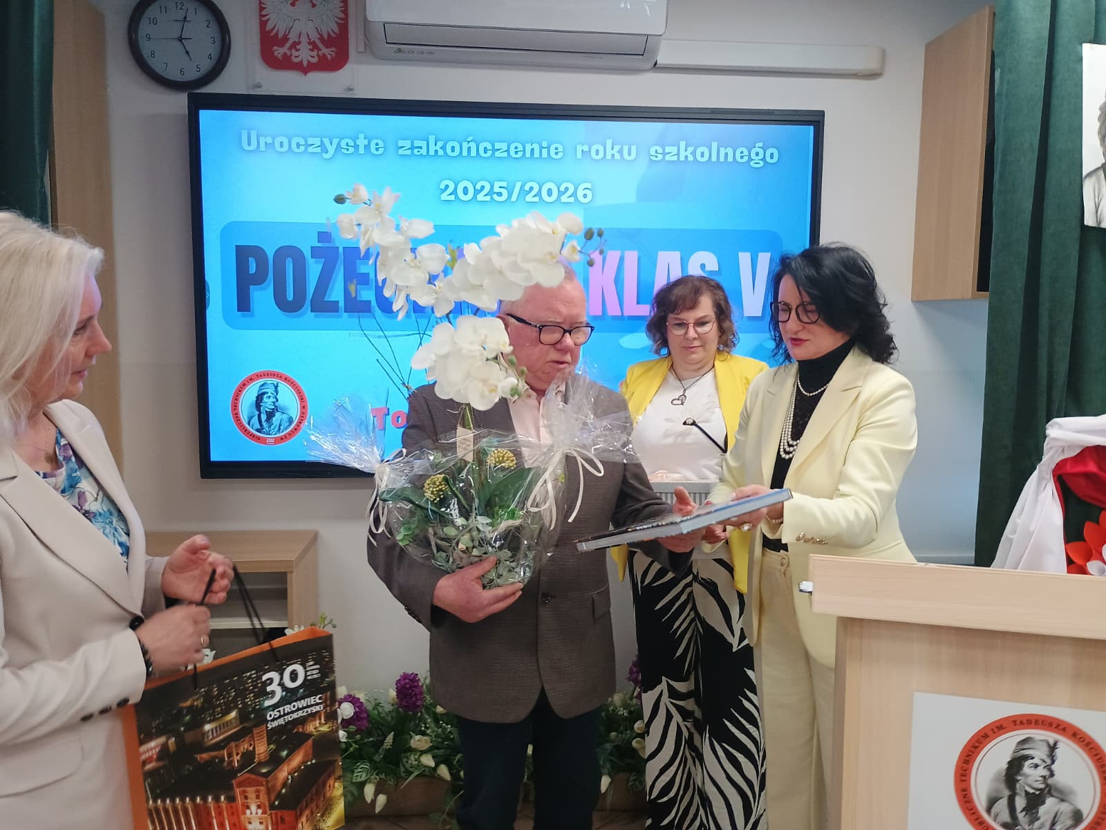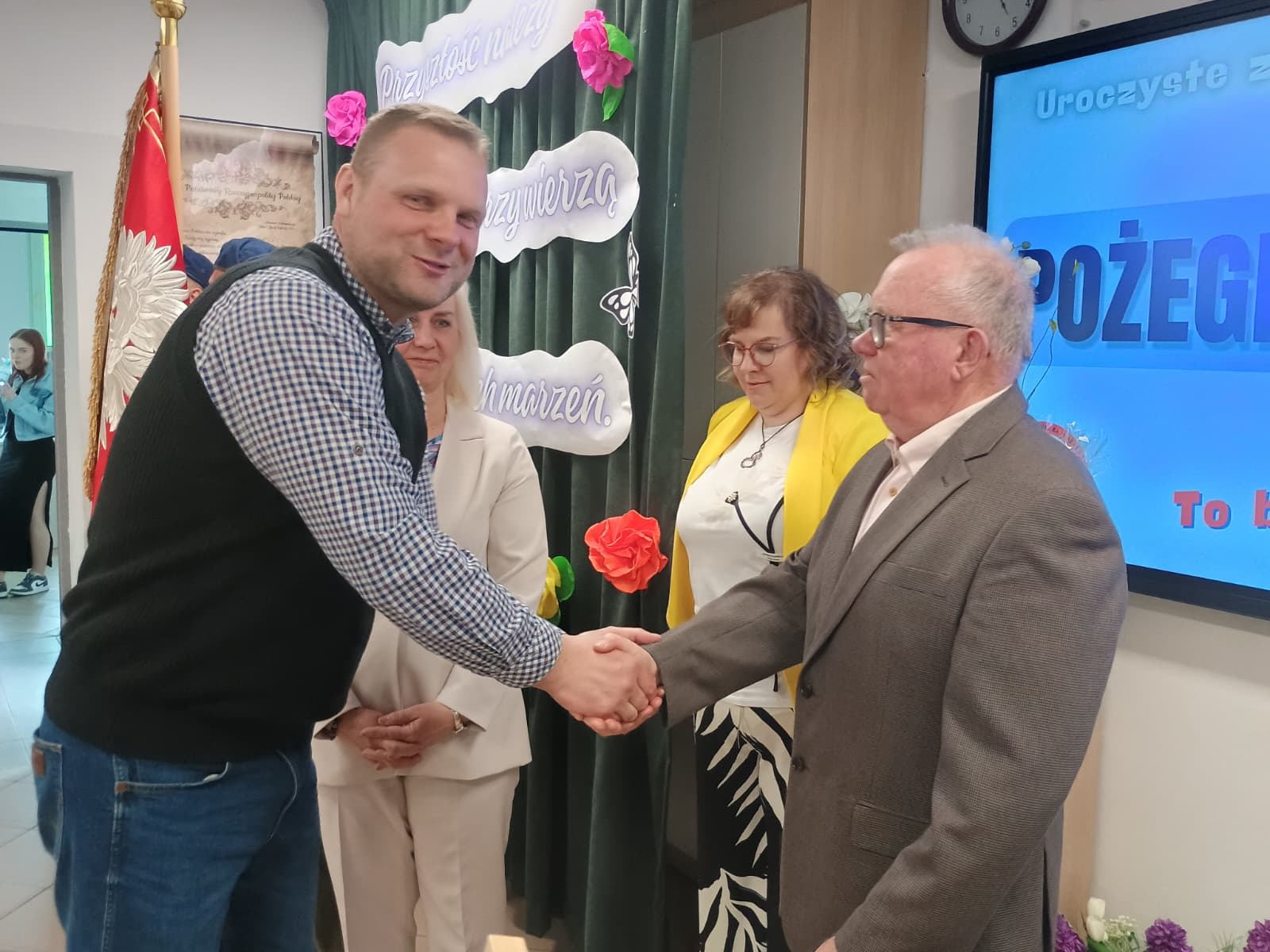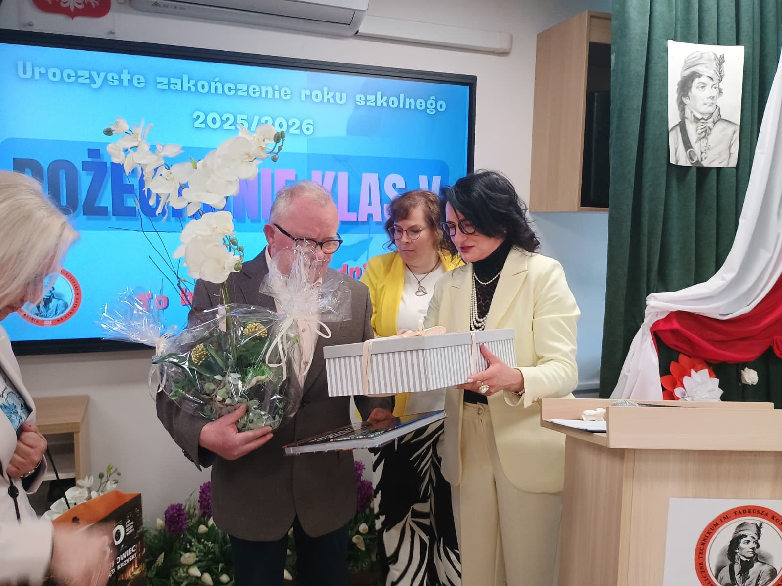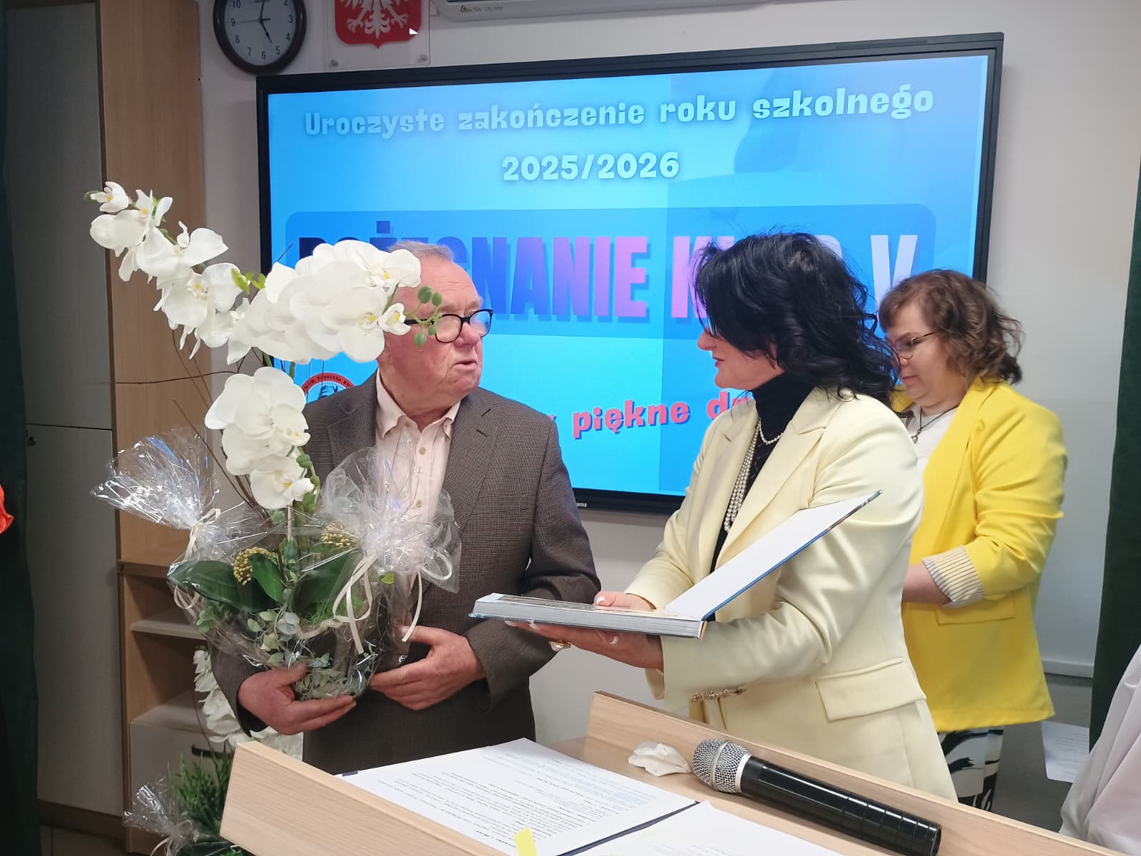 Podczas spotkania pożegnaliśmy również wieloletniego pedagoga – nauczyciela matematyki, pana Adama Konstantynowicza. Składamy serdeczne podziękowania za jego wkład w kształcenie i rozwój naszej młodzieży oraz życzymy dużo zdrowia, spokoju i pomyślności na kolejne lata.