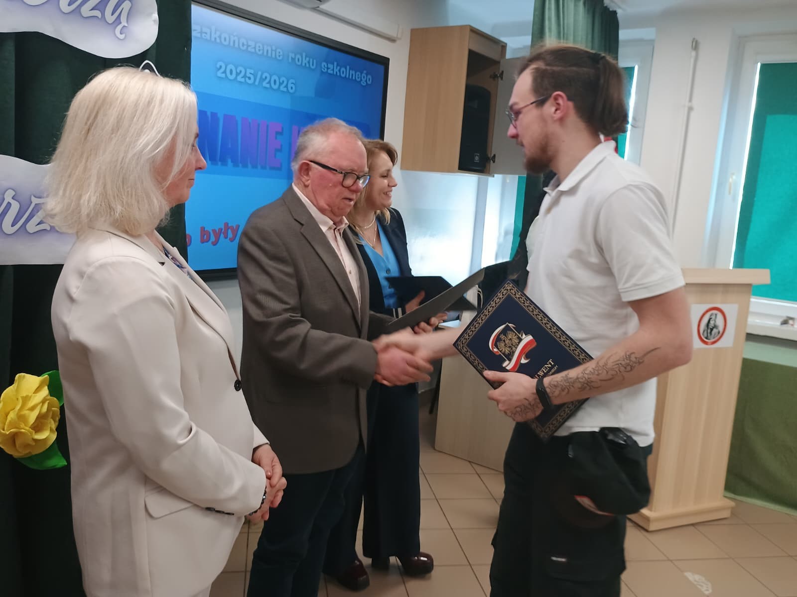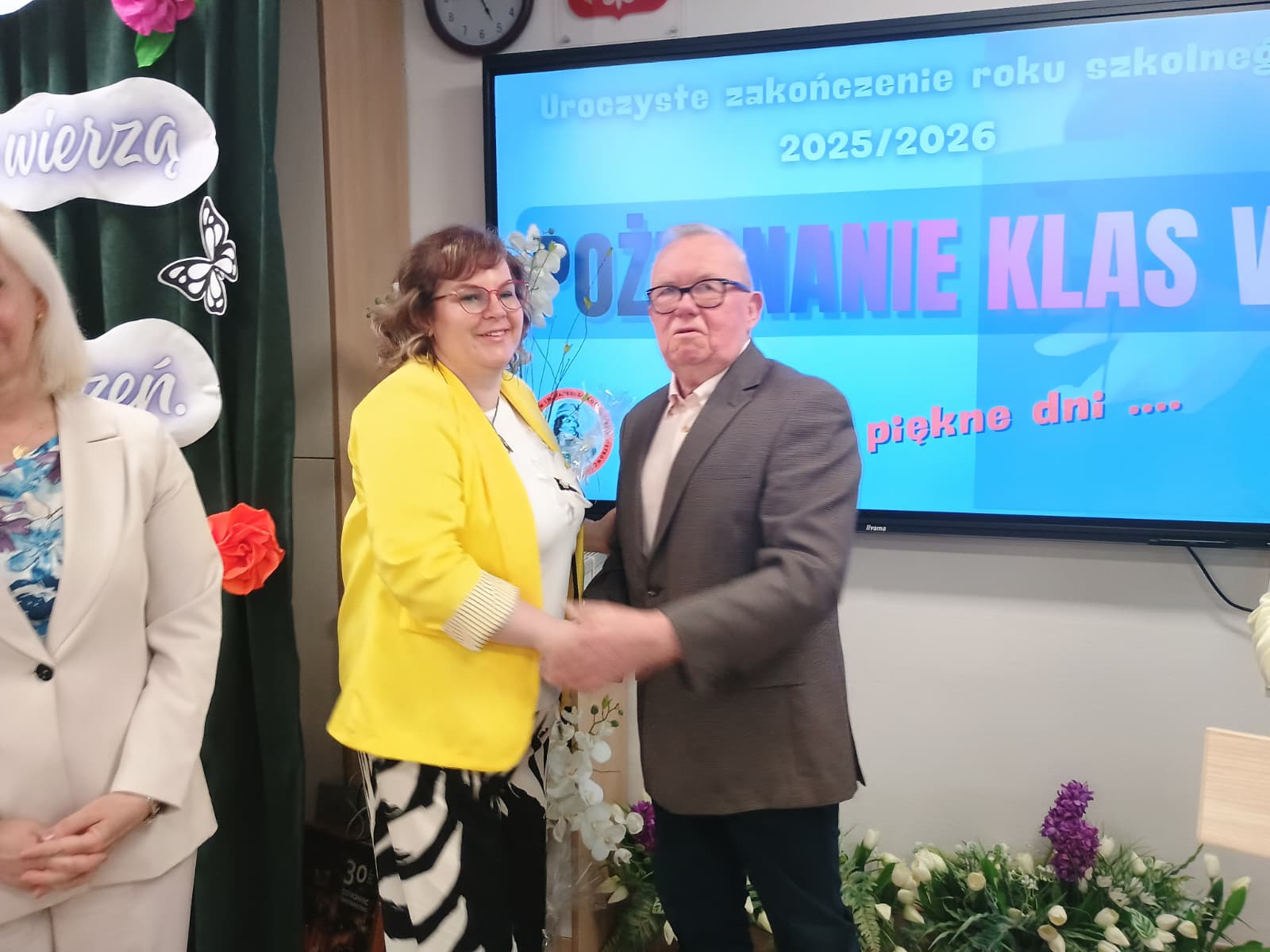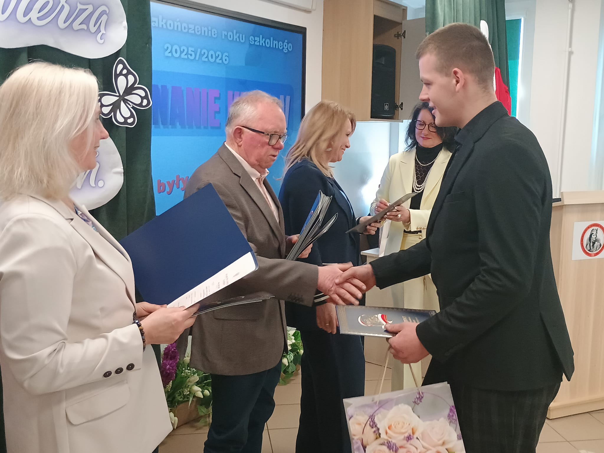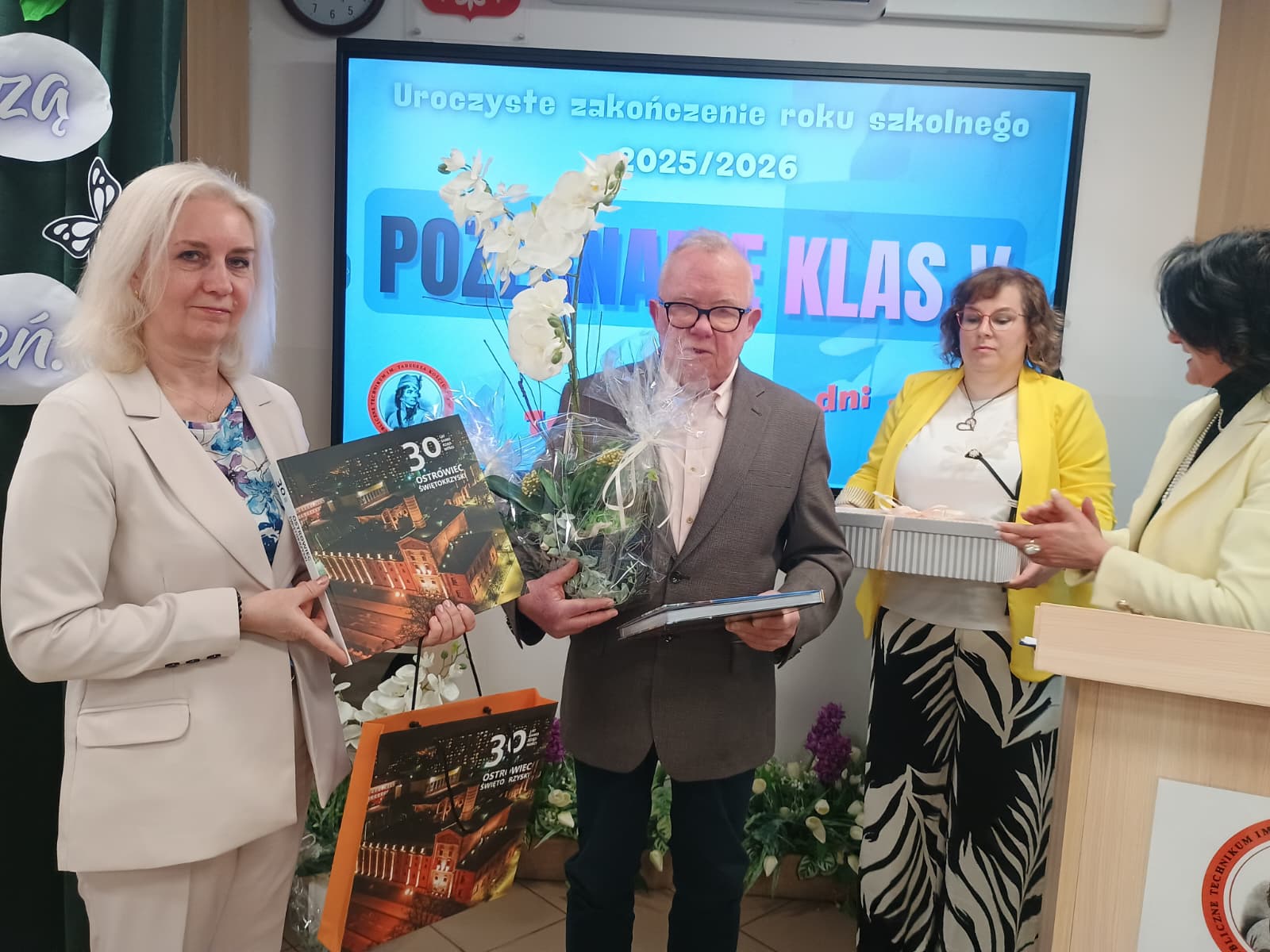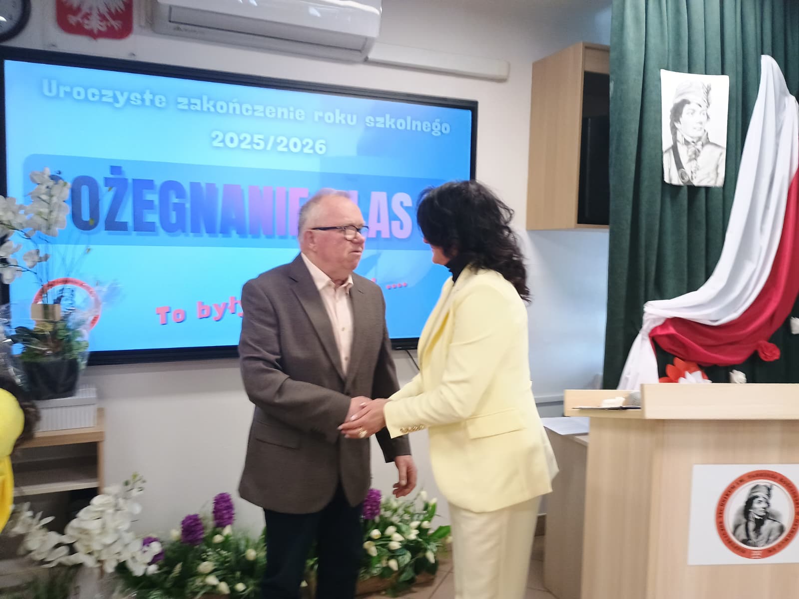Podczas spotkania pożegnaliśmy również wieloletniego pedagoga – nauczyciela matematyki, pana Adama Konstantynowicza. Składamy serdeczne podziękowania za jego wkład w kształcenie i rozwój naszej młodzieży oraz życzymy dużo zdrowia, spokoju i pomyślności na kolejne lata.