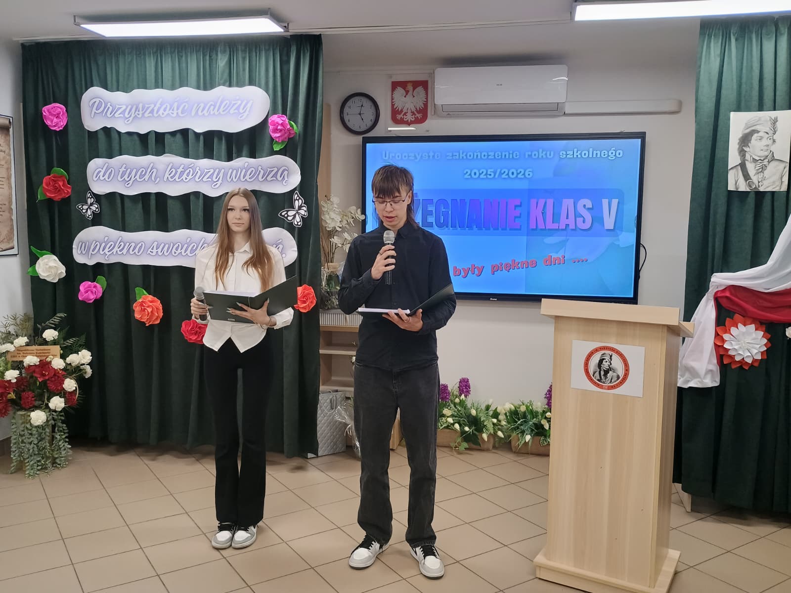 Uroczystości towarzyszyły zarówno chwile radości i uśmiechu, jak i wzruszenia. Był to wyjątkowy moment podsumowania pięciu lat nauki i wspólnie spędzonego czasu.